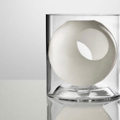 Muuto Vase dekorasjon med en unik, buet form i nøytral farge. Passer til innendørs bruk som dekorasjon i hjem eller kontor.