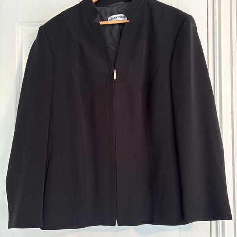 Gerry Weber jakke og bukse i størrelse 42 for kvinner. Fargen er svart, og materialet består av polyester med elastan. Passer til ulike anledninger og gir komfort gjennom elastaninnholdet.