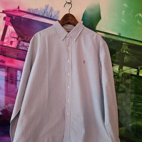 Ralph Lauren Polo Langermet Bomull Herre XL Blå