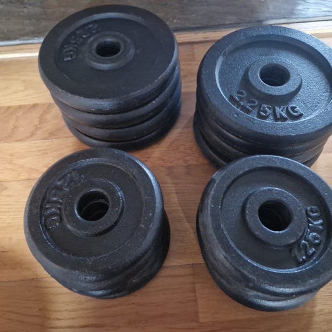 4x 20kg vektskiver, olympisk, 500pr stk.