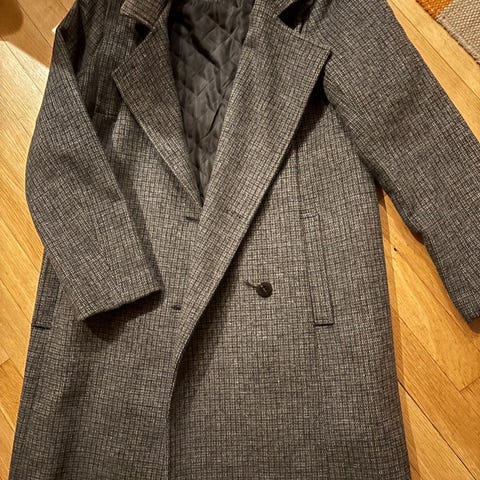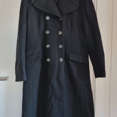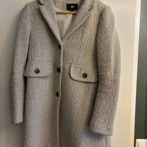 Lang kåpe fra H&M i ull i størrelse 38. Lite brukt, så den er i god stand.