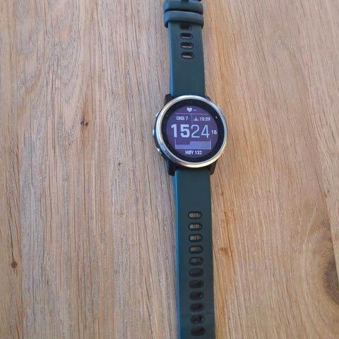 Selger min elskede treningspartner gjennom 5 år, kun fordi jeg fikk fenix 7 til jul. En super klokke som kan logge alt mulig av aktiviteter. Den må lades noe oftere enn da den var ny, men har fremdeles god batterikapasitet. Hurtigkobling for bytte av reimer, det finnes mange varianter både på Garmin, Power og Temu. Utslitt svart silikonreim kan medfølge om ønskelig. Ladekabel medfølger.