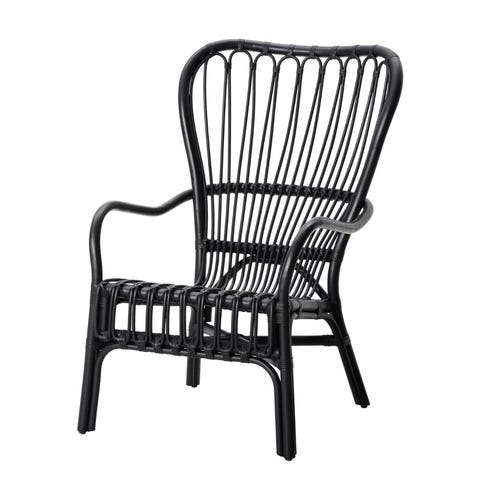 Kurvstol i flettet rotting med hvite sitte- og ryggpute. Stolen har høy rygg, brede og solid underdel i samme materiale. Egnet som lenestol i stue, vinterhage eller på overbygget uteplass der den er beskyttet mot vær og fukt.Høyde fra rygg til gulv er 82 cm.