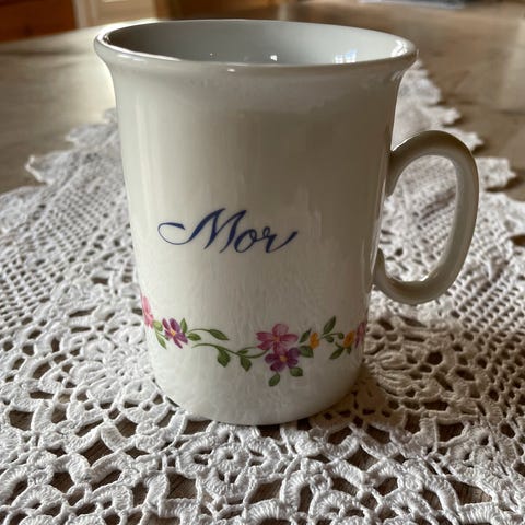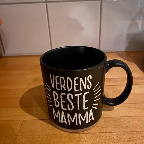 Kaffekopp kjøpt på hageland forrige morsdag.