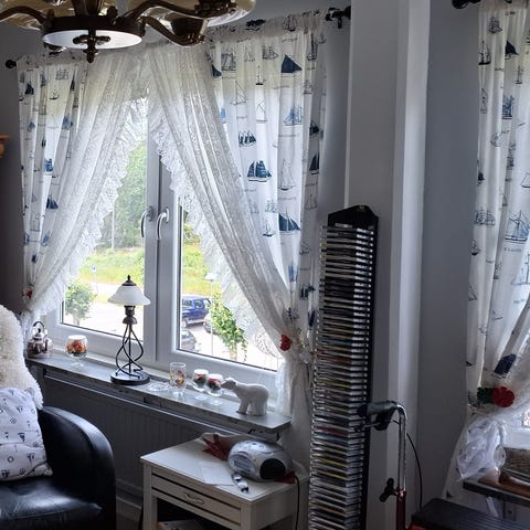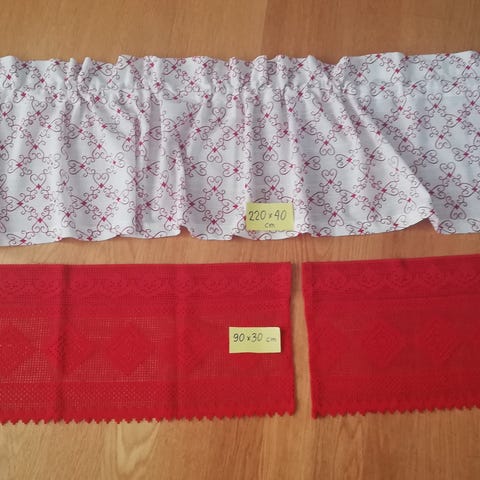 Retro-4 stk. gardiner sølv/lyse-grå/sort/burgunder med "Kina" tegn
