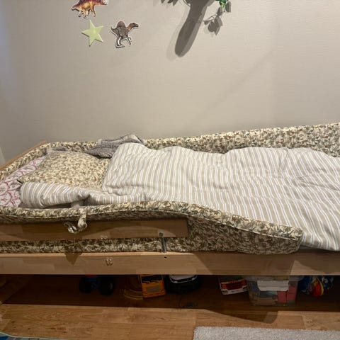 Blå bil seng selges siden ikke blir brukt mer. Sengen er demonter. Følger ikke med madrass