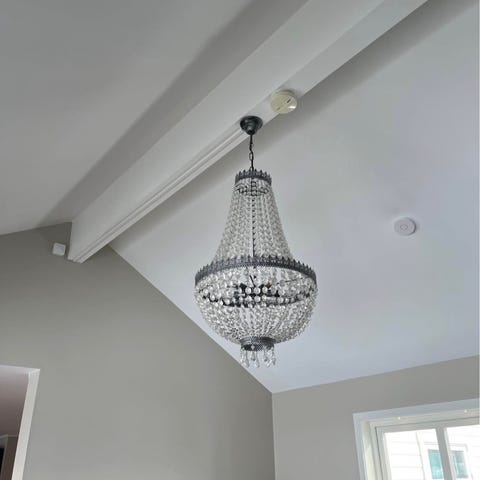 Dette er en stor IKEA Stockholm-lysekrone i 1960-tallsstil. Lampen heter Chandelier og er designet av Marcus Arvonen, den var tilgjengelig for salg i 2011 og er i plast og stål.