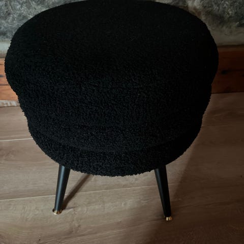 Stor rund puff som har vært til stor nytte og glede her hjemme, trenger nå et nytt hjem pga plassmangel. Selv har jeg brukt et løst trekk over den, da den rosa fargen ikke gled helt inn i mitt interiør🤭 Må hentes