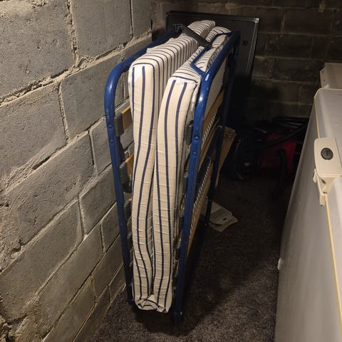 Pent brukt klappseng/sammenleggbar seng selges for å spare litt plass. Sengen funker fint som en gjesteseng som kan gjemmes bort i en bod når den ikke er i bruk