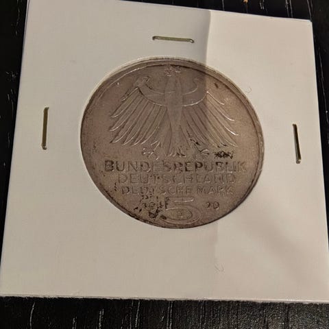 5 DM mynt fra Tyskland 1968 - Johannes Gutenberg