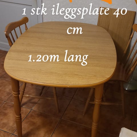 Det er ikke klaffer i bordet, så egner seg best som spisebord i en mindre leilighet eller som kjøkkenbord. Beina kan tas av ved transport.