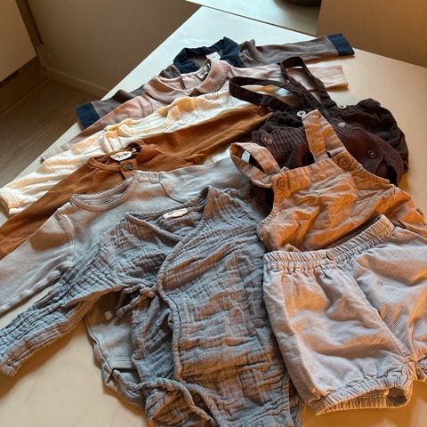 Barneklær for gutt i størrelse 62 fra merker som newbie, KappAhl, H&M, Lindex, lil atelier, name it, og reflex. Kommer også med litt smekker, tøfler fra Lillelam, og sengetøy fra høie som nesten ikke er brukt (til babydyne).