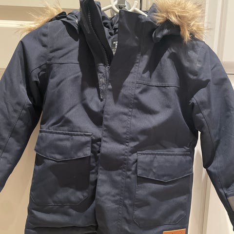 Fin vinterparkas i vins- og vannavvisende materiale. Hette med falsk pels gir ekstra beskyttelse mot snø, regn og vind.