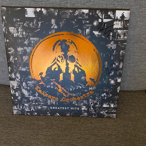 Kaizers Orchestra vinylsamling bestående av flere album med varierte omslagsdesign. Samlingen inkluderer ulike utgaver og coverkunst, egnet for samlere og fans av bandet.