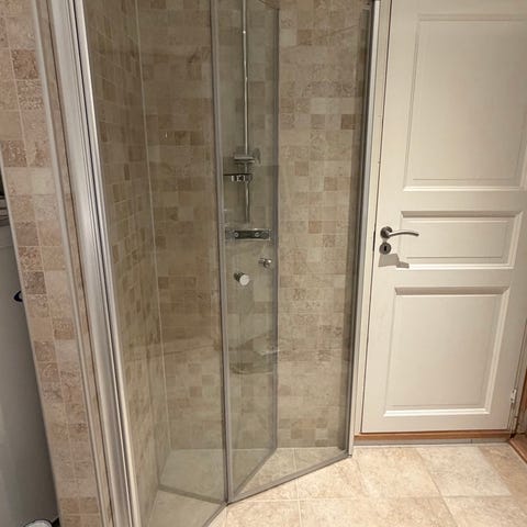 Dusjkabinett, og baderomsinnredning gis vekk