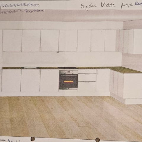 Kjøkkeninnredning i tre med overskap og underskap
