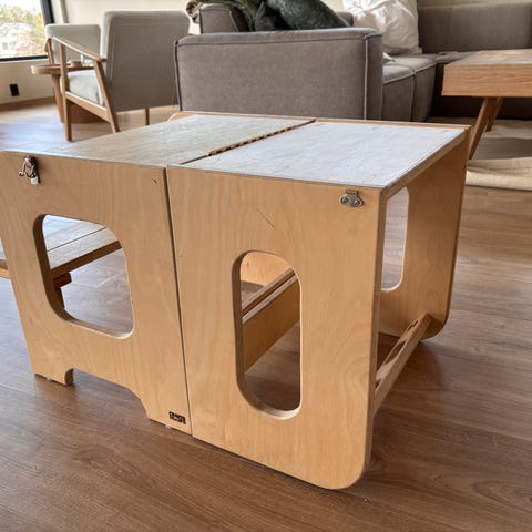 Selger et solid og funksjonelt WECO® 3-i-1 kjøkkentårn som enkelt kan brukes som læringstårn, pult og sklie. Et populært og praktisk møbel for barn som vil delta på kjøkkenet, tegne, spise eller leke.