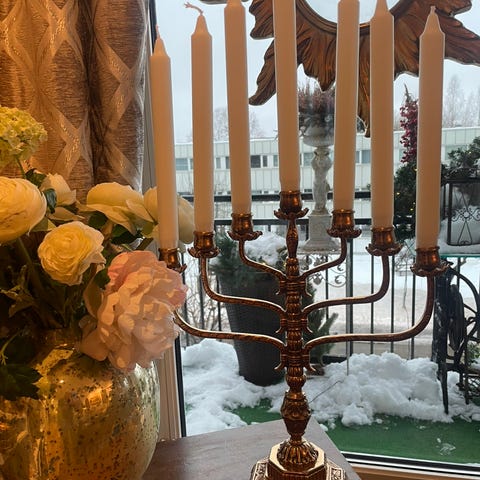 Vakker Hanukkah-menorah, sannsynligvis laget av messing, judaica.