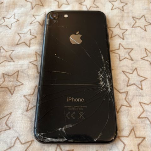 Sprekker bak som på bildet, men ingen løse deler. Ser fin ut med deksel på. Selges inkludert et deksel vår datter har brukt. Alt fungerer som det skal. Batteri kapasitet står på 58%.