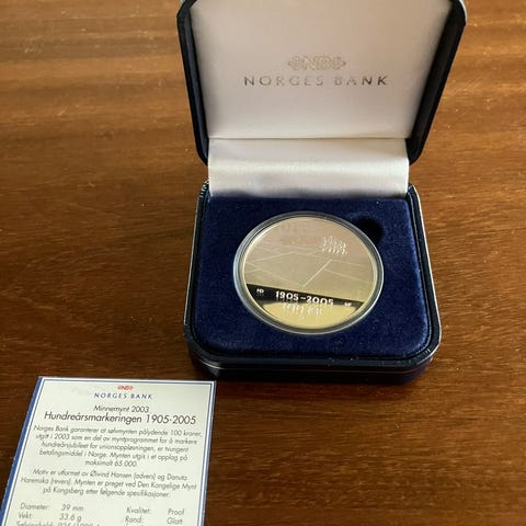 2005 Hundreårsmynten i etui ✨ 31,1g Rent Sølv ✨