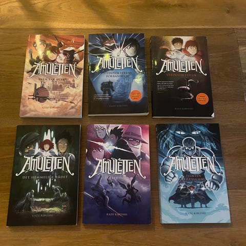 Bøkene fra serien "Amuletten", volum 1 til 8.