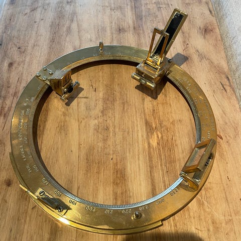 Metallhus, gradskive i mil/360°, optisk sikte og linjal.
