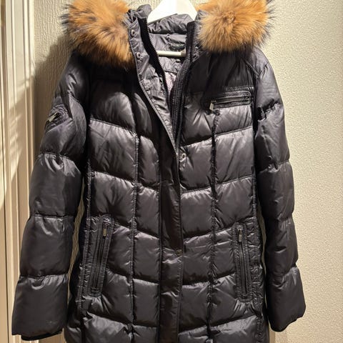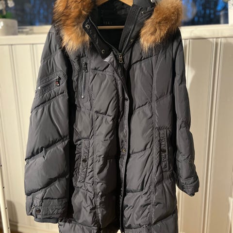 Jakken har avtagbar hette med avtagbar ekte pels. Den er svært lite brukt, nyvasket og fremstår som ny.