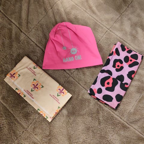Lue og skjerf med pynt str 134/146 (8-11 år) selges samlet kr 100,-