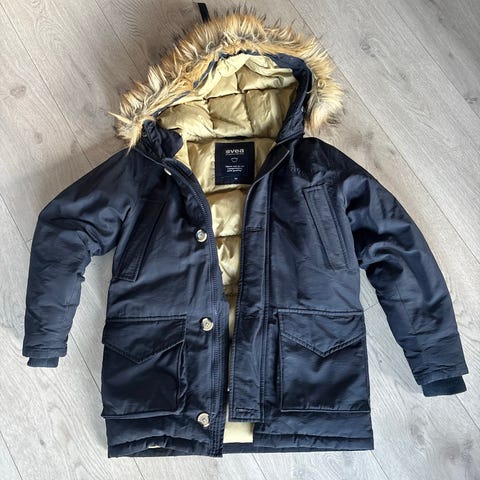 Dette Sveas versjon av den populære Miss Smith vinterjakken som er tilpasset barn og ungdom. Den er litt kortere og ikke innsvingt, så den passer både gutter og jenter. Den er en deilig dunjakke til ungdommen med 80% dun, 20% fjær. Farge mørkeblå. Størrelse 150. Nypris pluss/minus 2.500,-.