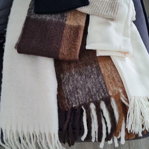 Hansker og skjerf er helt nye.