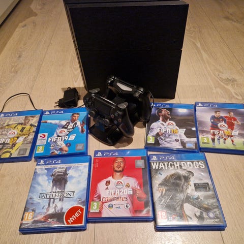 PlayStation 4 Spillkonsoll med 2 kontrollere og 7 spill