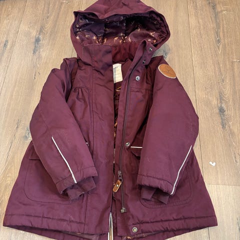Knallfin vinterjakke med teddy innerstoff og fuskepels på hetta.