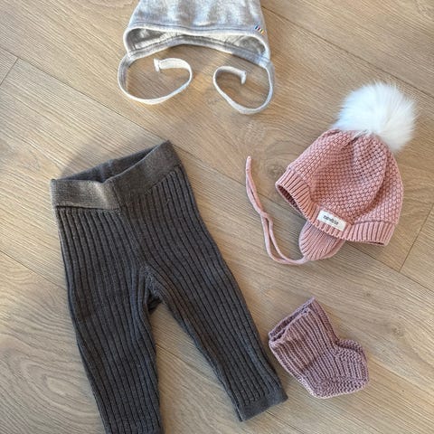 Balaclavaen og romper er brukt fra barnet var 62 - 68.