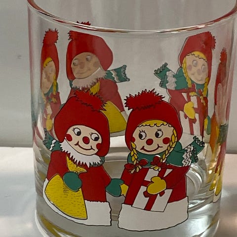 Har igjen 2 stk , retro flotte glass med julenisse og reinsdyr. Laget i Italia.