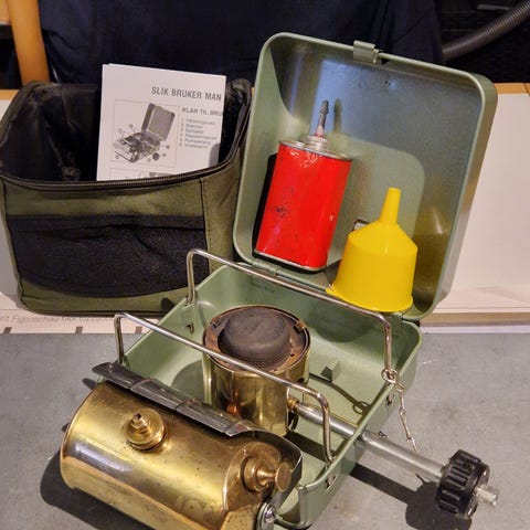 Jeg kan også bytte i primuser for parafin/bensin, petromaxlamper eller blåselamper.