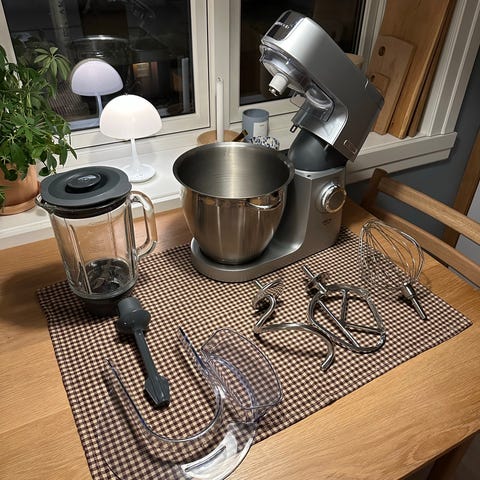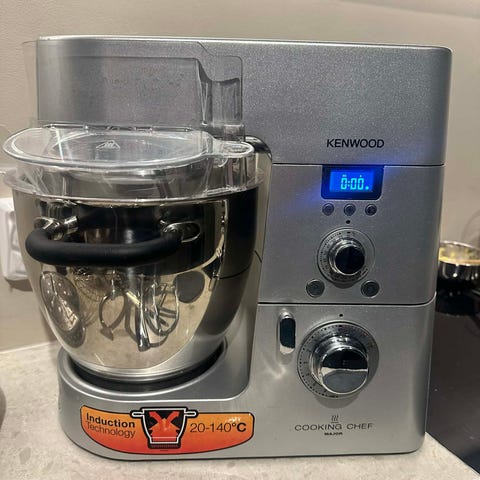 Kenwood Chef XL kjøkkenmaskin med rustfri bolle, flere tilbehørsdeler inkludert blender, kjøttkvern og dampinnsats. Maskinen har justerbare hastigheter og er egnet for ulike matlagingsoppgaver som baking, hakking og miksing.Induksjonsteknologi 20-140 grader. NB! det er ikke foodprocessor med men alt av tilbehør til en foodprocessor.