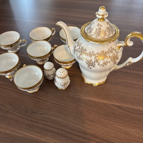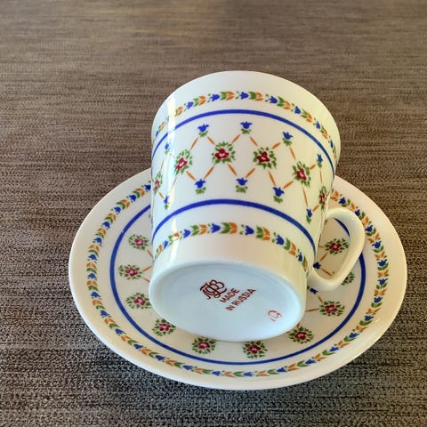2 sett tekopp med skål - Ornament Leaves, Lomonosov 4 deler