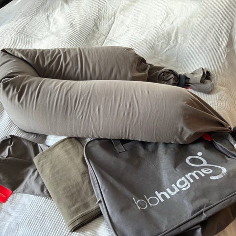 Lite brukt Bbhugme gravid- og ammepute, grå.