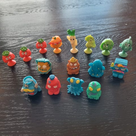 Figurene er brukt, men i grei stand. Fine som leker, samleobjekter eller nostalgi for barn som liker The Trash Pack-universet.