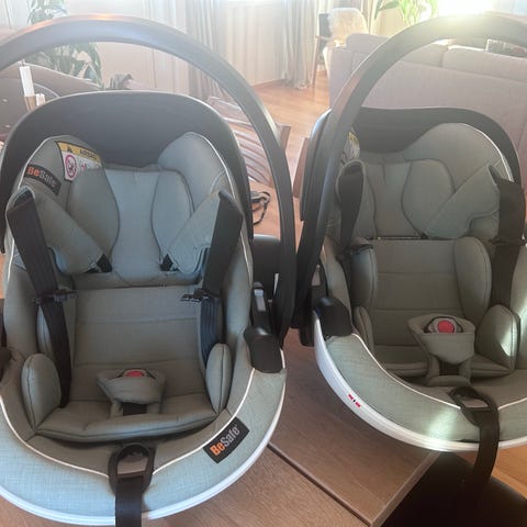 BeSafe iZi Modular bilsete til baby med en vektgrense på opptil 13 kg eller 75cm.. Setet har en grå farge og er designet for å gi sikker og komfortabel transport av spedbarn i bil. Setet er produsert i vinter 22 og har vært pent brukt av to barn. Mangler en metalmyle på "kalesjen", men det har ingenting å si for bruken. Vår baby har trivdes veldig godt i denne stolen og kan virkelig anbefale den. Gode magnetfester på siden av stolen og basen piper dersom stolen den ikke er montert skikkelig, gir økt trygghet 😊 stolen er svært smal utvendig og ble valgt da vi måtte ha 3 stoler på rad i baksetet. Den er likevel romslig innvendig og god plass til baby.