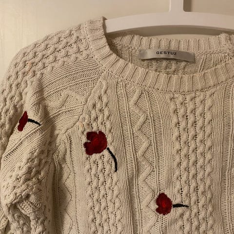 Gestuz Molly genser i størrelse S, fargen blå, laget av mohairull. Genseren er designet for kvinner og har en myk og varm tekstur, egnet for kaldt vær. Materialet består av 70 % mohair og 30 % polyamid, med håndvask anbefalt for å bevare kvaliteten.