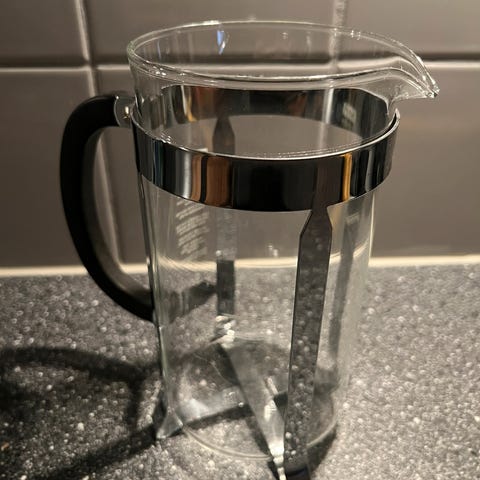 Bodum Bistro presskanne med tilhørende 6 glasskopper. Presskannen har et enkelt og funksjonelt design, egnet for brygging av kaffe evt te. Settet inkluderer flere glasskopper som passer til presskannen samt fløte/sukkersett.