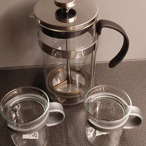 Bodum Bistro Presskanne med 6 glasskopper fløte og sukkerskål