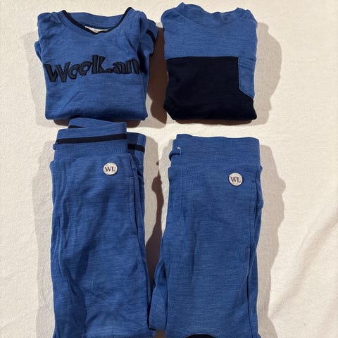 Klespakke Ullpakke til gutt med merker som hust and claire, nameit, meetoo, WoolLand ullundertøy for gutt i størrelse 98, farge blå. Sett bestående av overdel og underdel i ullmateriale, egnet for barn og gir isolasjon og komfort ved kaldt vær.