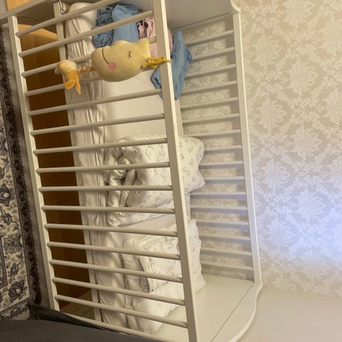 Jeg selger helt ny barne seng. Lengde er 1meter og brede 60cm.
