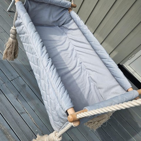 Det følger med en tynn sengekant, men det er også mulig å få med en tykkere sengekant fra smallstuff uten ekstra kostnad: https://www.finn.no/recommerce/forsale/item/421465000