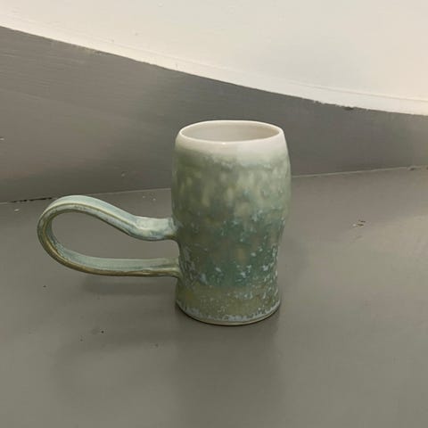 Håndmalt keramisk kaffekopp med skål