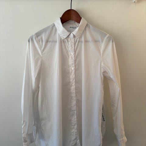 Selected Femme skjorte i oransje med stripemønster. Laget av bomullsmateriale. Passer til dame, størrelse 38. Veldig lite brukt!