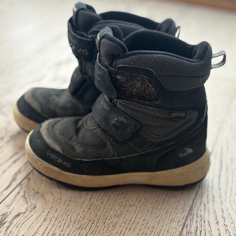 Viking Gortex vintersko i størrelse 29, designet for unisex bruk. Støvlene har en lilla farge og egner seg for barn. Skoene mangler innersåle. Kan kjøpe billige innersåler i ull på f. Eks XXL. Mulig jeg kan sende med noen om jeg finner de.