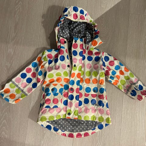 Regnjakke fra Reflex i strl 92 selges. Normal slitasje og bruk. Vannmerke på innsiden, men ingenting å si på bruken.